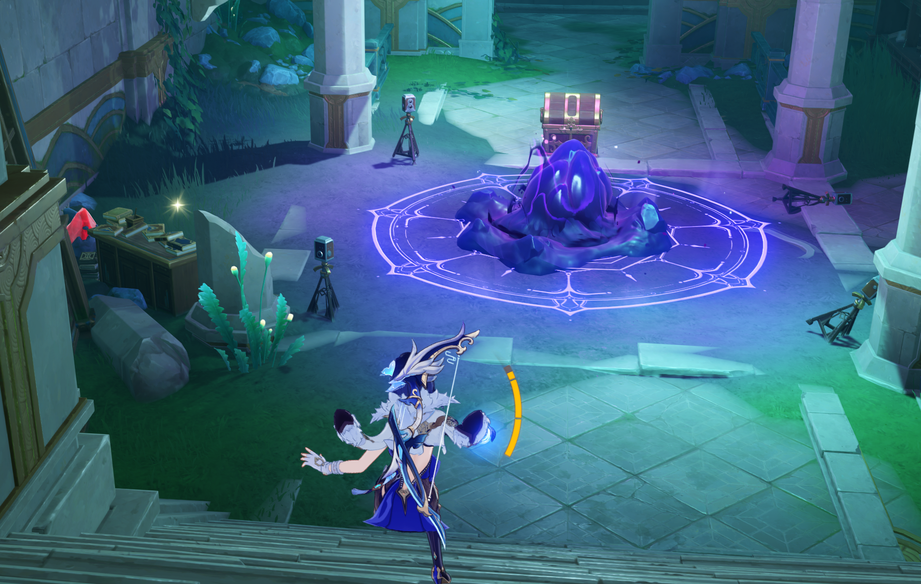 쭈욱 진행해서 물살에 휩쓸려서 나가게 되었을 경우 다시 [폰타인 자연철학 학원] 워프 포인트를 타고 돌아와서 물의 신 눈동자도 먹을 겸,
