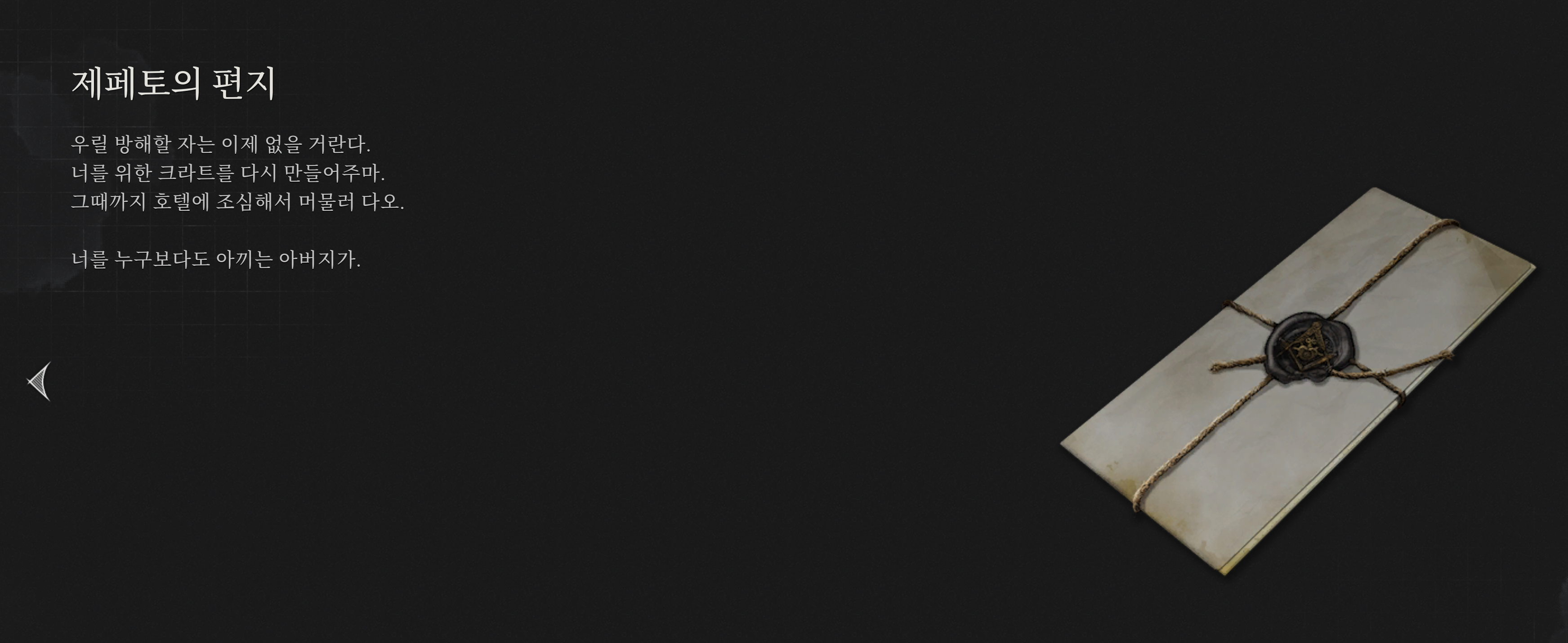 2. 크레딧이 끝난 후, 다음 회차로 넘어가지 마시고 제페토 방에 가시면 책상에 편지가 있습니다.